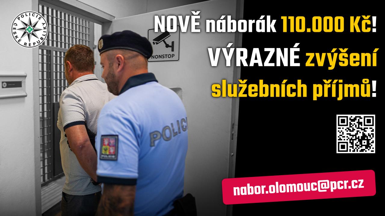 Nově náborový příspěvek 110.000 Kč a výrazné zvýšení služebních příjmů policistů a policistek v Olomouckém kraji. Chcete akční job, kde žádný den není stejný? Jako policista/ka můžete zachránit lidský život, najít pohřešované dítě, ztraceného seniora, zabránit týrání zvířete….. Budete zajišťovat stopy, vyslýchat svědky, ohledávat místo činu, shromažďovat důkazy, pracovat s moderní technikou a absolvujete výcvik v sebeobraně a střelbě.